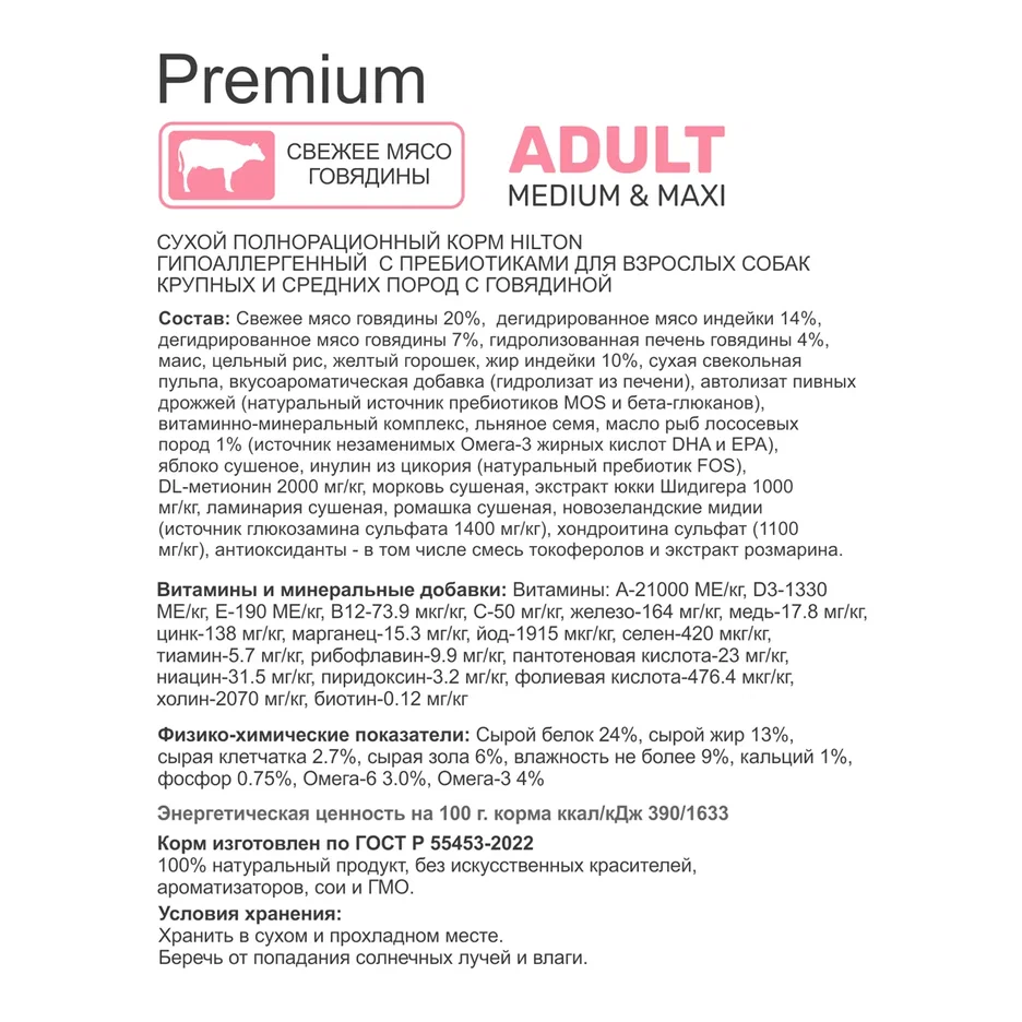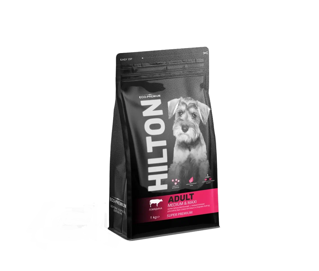 Сухой корм HILTON для собак средних и крупных пород с говядиной.