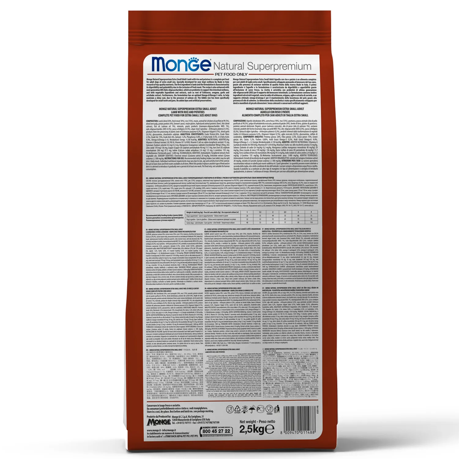 Полнорационный сухой корм для взрослых собак миниатюрных пород Monge Dog Speciality Line Extra Small с ягнёнком, 800 г