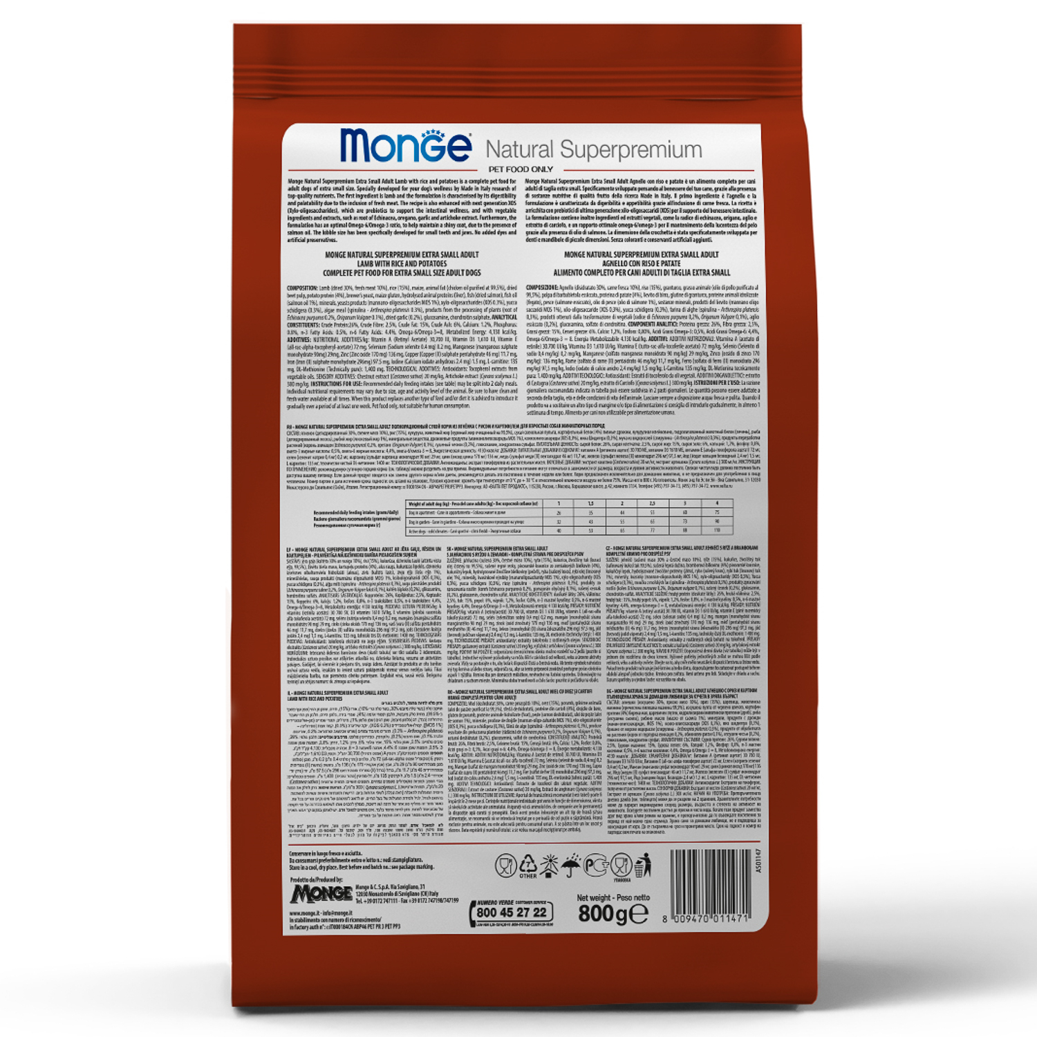 Полнорационный сухой корм для взрослых собак миниатюрных пород Monge Dog Speciality Line Extra Small с ягнёнком, 800 г