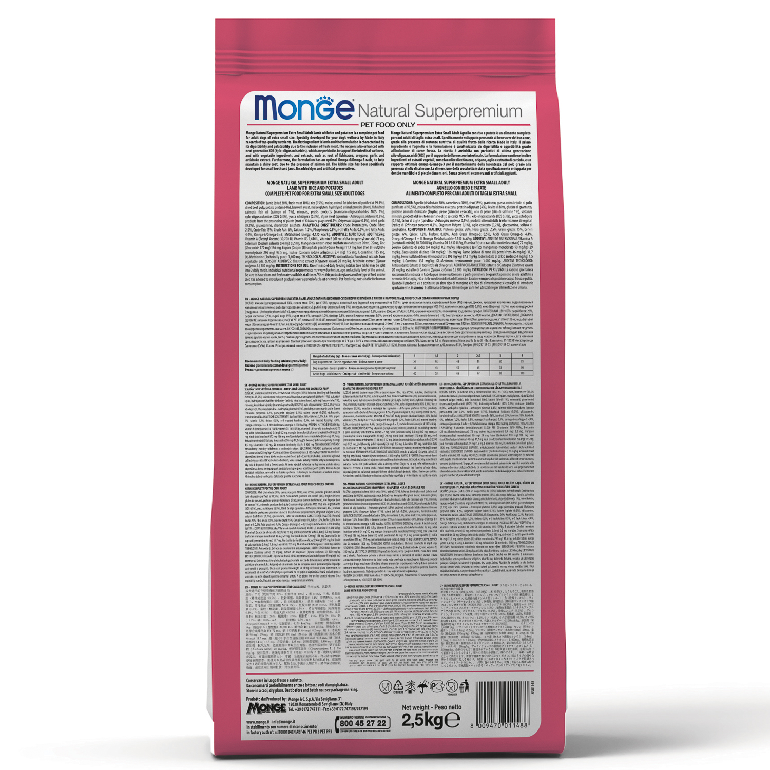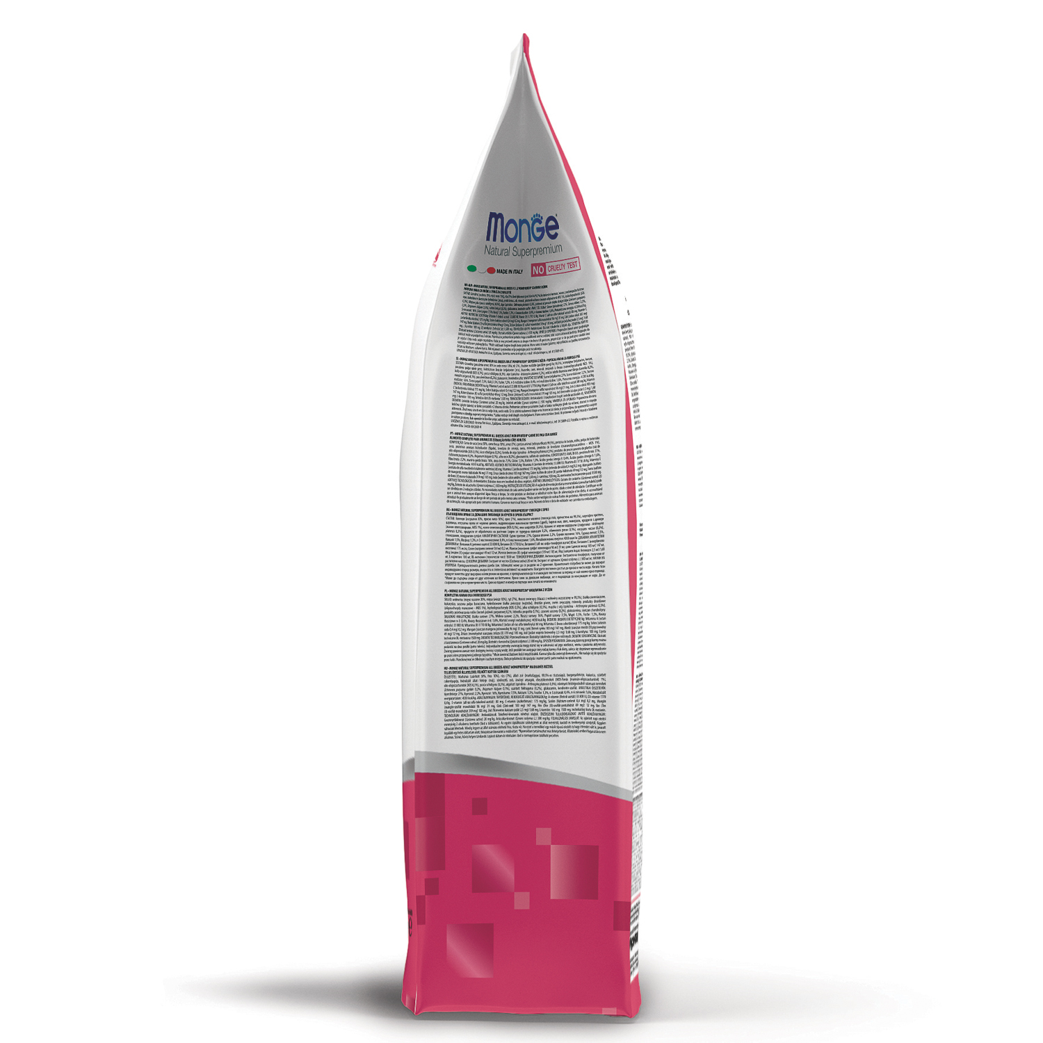 Корм произведён в Италии без использования ГМО, искусственных красителей и ароматизаторов.