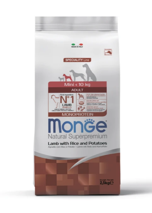 MONGE SPECIALITY LINE MINI ADULT LAMB, RICE AND POTATOES - это полноценный сбалансированный рацион для взрослых собак мелких пород. Оптимален для собак, склонных к аллергическим воспалительным реакциям.