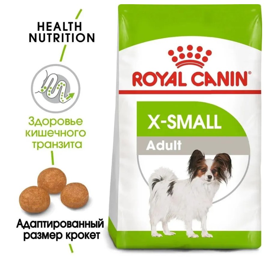ROYAL CANIN® X-SMALL ADULT — сухой корм для взрослых собак очень мелких пород (до 4 кг) от 10 месяцев до 8 лет.