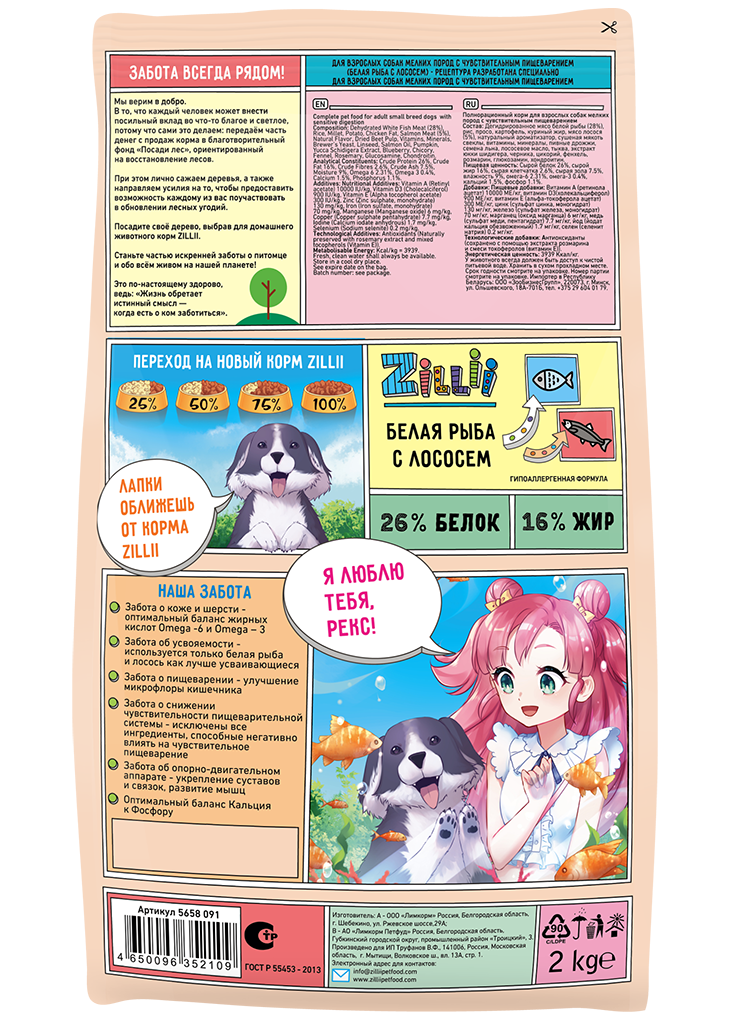 Рецептура ZILLII SENSITIVE DIGESTION специально создана для собак мелких пород с чувствительным пищеварением. Белая рыба прекрасно подходит для чувствительного пищеварения из-за высокой усвояемости и гипоаллергенности. В белой рыбе рекордное количество качественного белка, при этом минимум калорий. В мясе белой рыбы содержатся в большом количестве витамины группы А и С, а также группы B, которые способствуют детоксикации организма и борются с воспалительными процессами.