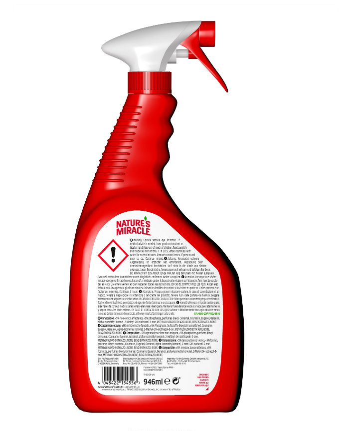 Уничтожитель пятен и запахов с усиленной формулой эффективно удаляет стойкие органические пятна и запахи, оставленные питомцами: моча, фекалии, рвота, диарея и другие органические пятна.