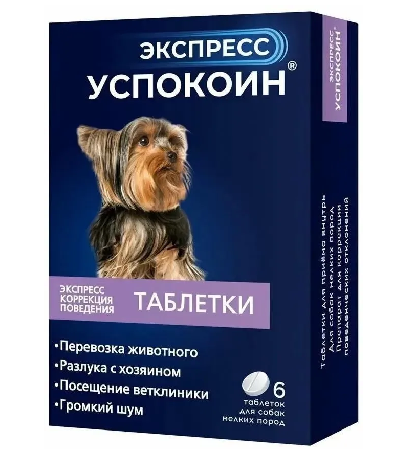 Экспресс Успокоин таблетки для кошек и для собак мелких пород (масса таблетки 103 мг) - 24 мг/табл.;