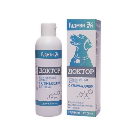 Шампунь для гигиенического ухода за кожей и шерстью животных - полифункциональное средство, с мягкой моющей основой, содержащей поверхностно-активные вещества растительного происхождения, эффективно борется с дрожжеподобными грибами, очищает кожу и шерсть животного, снимает раздражение и зуд кожи, обладает дезодорирующим действием, способствует подавлению воспалительных процессов, нормализует выработку кожных секретов. Инновационная формула шампуня содержит два противогрибковых агента: климбазол и натуральный экстракт коры ивы.