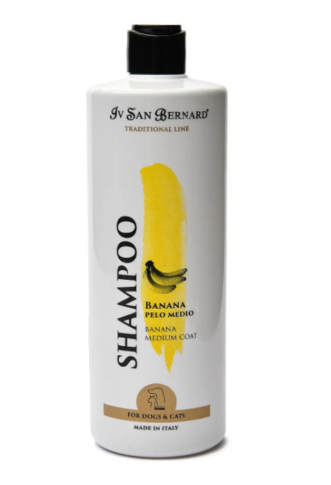 Шампунь Iv San Bernard Traditional Line Banana для шерсти средней длины Шампунь с приятным ароматом банана для собак и кошек с шерстью средней длины. Благодаря нежному и укрепляющему действию шампуня, шерсть приобретает эластичность и блеск. Способ применения: разбавить 1 часть шампуня 3 частями воды. Нанести шампунь на предварительно смоченную шерсть легкими движениями. Втирайте в течение нескольких минут. Тщательно ополоснуть теплой водой. Для наилучшего результата после шампуня применяйте кондиционер «Банан» от Ив Сан Бернард.