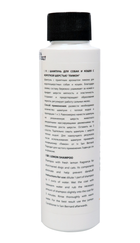 Шампунь с приятным ароматом лимона для гладкошерстных собак и кошек. Благодаря своему составу шампунь устраняет и предотвращает образование перхоти.
