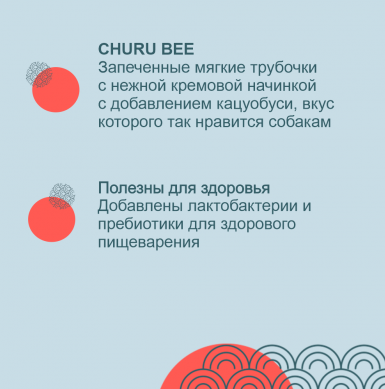 Запеченные трубочки Churu Bee с нежной кремовой начинкой на основе куриного филе от японского производителя Inaba, трубочки имеют усиленный вкус вяленого тунца кацуо, поэтому лакомство не оставит равнодушным даже самых привередливых собак. Состав лакомства обогащен лактобактериями для профилактики заболеваний ЖКТ.