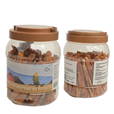 Стрипсы мраморные из лосося— это настоящие вкусняшки для ваших питомцев. Изготовлены из натурального филе лосося с аппетитной мраморной текстурой. Полоски из лосося богаты омега-3 жирными кислотами, которые способствуют здоровью кожи и шерсти вашей собаки. Кроме того, оно помогает укрепить иммунную систему и поддерживает общее состояние здоровья вашего питомца. Изготовлены из натуральных ингредиентов без добавления искусственных красителей и консервантов. Это значит, что Вы можете быть уверены в качестве продукции, которую даете своим питомцам. Благодаря своей текстуре и размеру, палочки идеально подходят для жевания, что способствует укреплению челюстных мышц и здоровью зубов вашей собаки. Рыбные палочки станут незаменимыми для дрессировки, обучения или просто для того, чтобы порадовать своего любимца.