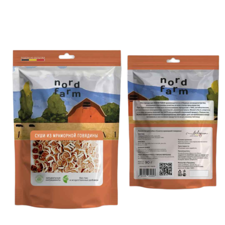 Состав: Говядина 81,5%, угка 5,5%, треска 6%, картофельный крахмал 4%, глицерин 1,75%, сорбит 1%, соль 0,25%.