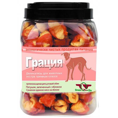Green Qzin лакомство для собак грация 2 (сушеное куриное мясо на яблоке).Рекомендуется крупным и мелким породам собак, молодым щенкам, не достигшим одного года, особенно полезен самкам в период вынашивания и лактации.Преимущества.Способствует выведению шлаков из организма собаки, укрепляет защитные силы организма; - Улучшает пищеварение, регулирует работу почек, стимулируем кроветворение, увеличивает снабжение мозга питательными веществами;Рекомендуется крупным и мелким породам собак, молодым щенкам, не достигшим одного года, особенно полезен самкам в период вынашивания и лактации.Продукты Greencuisine (Грин Кьюзин) – полезное и полноценное питание Вашего питомца Лакомства от производителя Грин Кьюзин разработаны с целью восполнения в организме животного необходимых витаминов и полезных вещества.Указанная торговая марка – это: