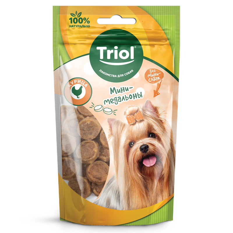 Мини-медальоны из курицы - это вкусное и полезное угощение в миниатюрном формате. Лакомство идеально подходит для щенков и собак миниатюрных пород: легкоусвояемые компоненты позволяют быстро переваривать продукт, не допуская проблем с чувствительным пищеварением. А благодаря удобной дозировке, мини-лакомство отлично подойдет в качестве поощрения во время дрессировки.