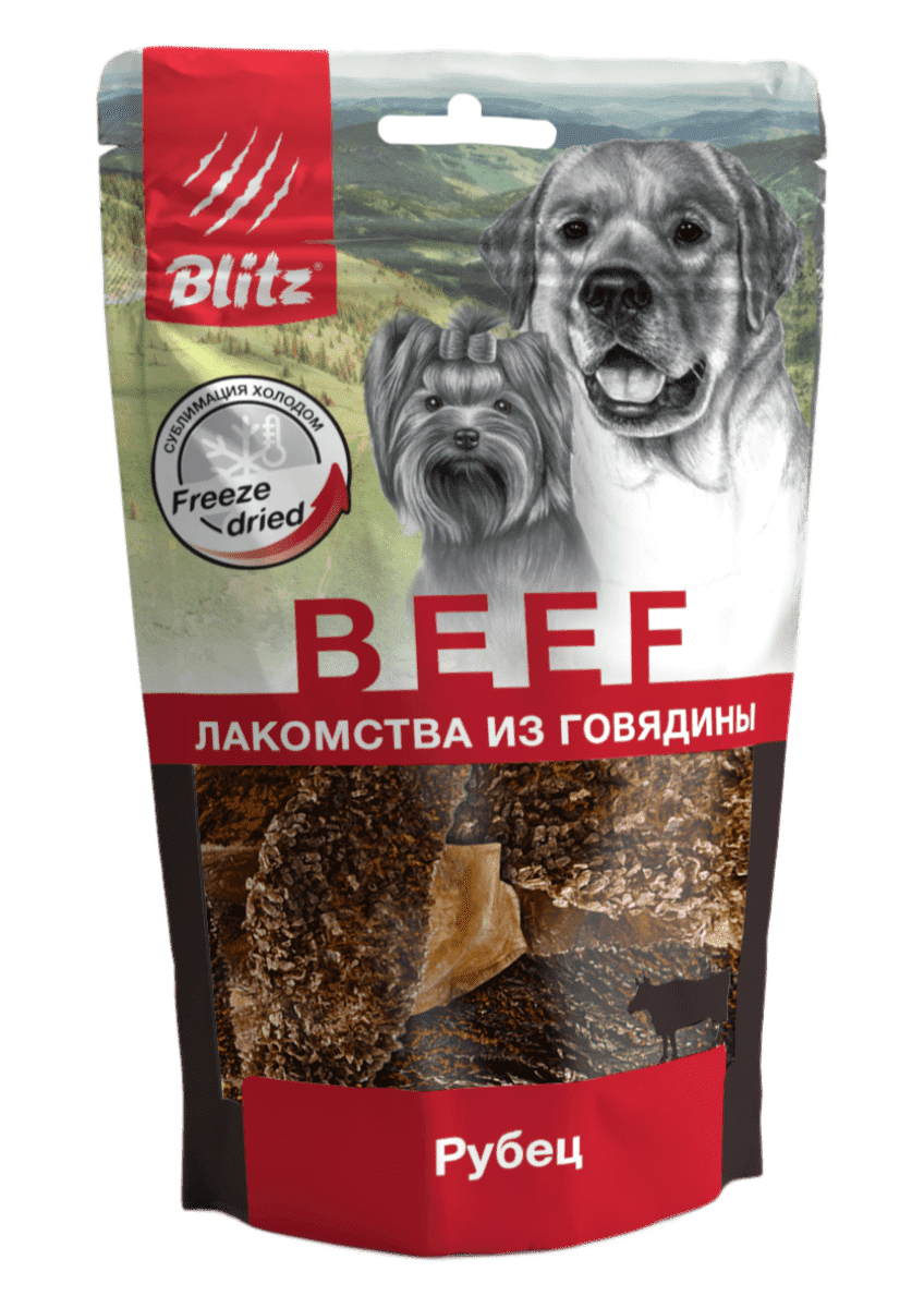 Именно поэтому сублимированное лакомство Blitz для собак из говяжьего рубца — это не просто угощение для питомца, но и очень полезный продукт.