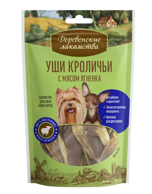 Комбинация хрустящих кроличьих ушек с нежным мясом ягненка создают уникальное лакомство, которое не только придется по вкусу любой собаке, но и заставит ее немного потрудиться.
