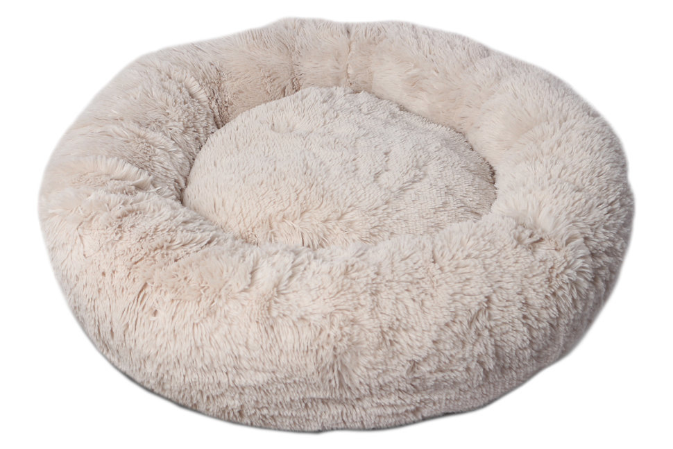 Эко-мех имитирует комфорт материнской шерсти. Держит тепло, защитит от сквозняков, но и летом не будет жарко. Внутри ,как обычно, первосортный синтепух, а съемный чехол облегчит уход за лежанкой.
