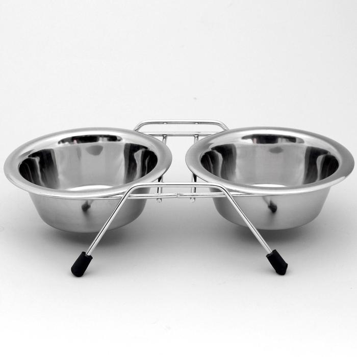 Это функциональный аксессуар для вашего питомца. Изделие состоит из двух мисок, выполненных из высококачественного металла. Миски размещены на подставке с резиновыми колпачками на ножках. Стильный дизайн придаст изделию индивидуальность и удовлетворит вкус самых взыскательных зоовладельцев.