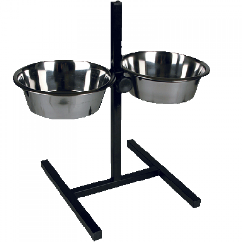 Регулируемая по высоте подставка. Миски вынимаются.