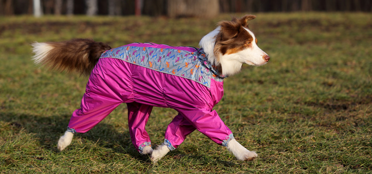 Предназначен для прогулок в межсезонье, в сырую погоду для защиты собаки от грязи и воды.