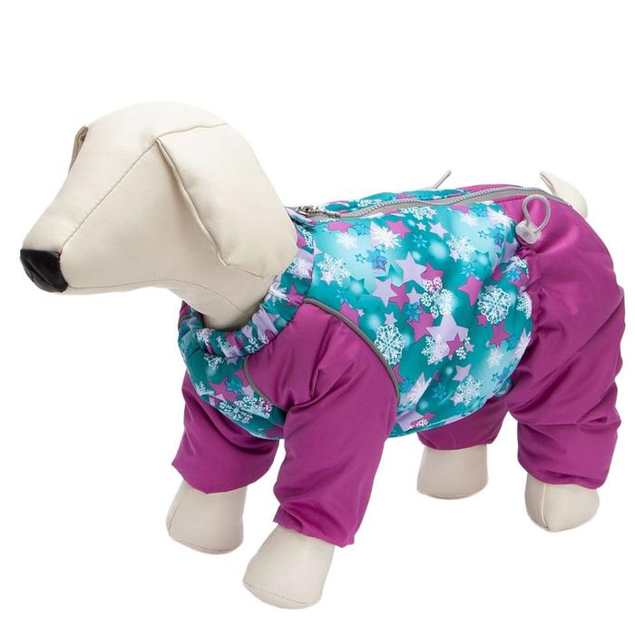 Зимний комбинезон для собак OSSO Fashion состоит из: - водоотталкивающей и ветрозащитной ткани (100% полиэстер), обработанной водоотталкивающей (PU) пропиткой. - утеплителя - синтепона и подкладки (100% полиэстер). Зимний комбинезон Снежинка идеален для прогулок в холодную, морозную или сырую погоду для защиты собаки от снега, грязи и воды. Выполнен из двух сочетаемых по цвету тканей, используется отделка со светоотражающим кантом. Внутренняя часть утеплена синтепоном. Застегивается сверху на спине на молнии. На воротнике имеется кнопка для фиксации. Комфортная посадка по корпусу достигается за счет резинки-утяжки под животом. Низ штанин сборен на резинку, при желании можно подвернуть. Зимний комбинезон максимально защитит собаку от холода и грязи, т.к животик полностью закрыт, для кобелей есть специальный вырез. Рекомендуется машинная стирка с использованием средства для стирки деликатных тканей (при температуре не выше 40?С) и загрузке барабана не более чем на 40% от его объема, отжим при скорости не более