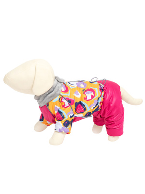 Комбинезон легко одевается и застёгивается на спине с помощью молнии. На воротнике имеется кнопка для фиксации. Ворот комбинезона отделан мехом . Для лучшей посадки объём комбинезона регулируется с помощью шнурка - утяжки под животом, резинками на лапах. Светоотражающий кант сделает заметным Вашего питомца в темное время суток.