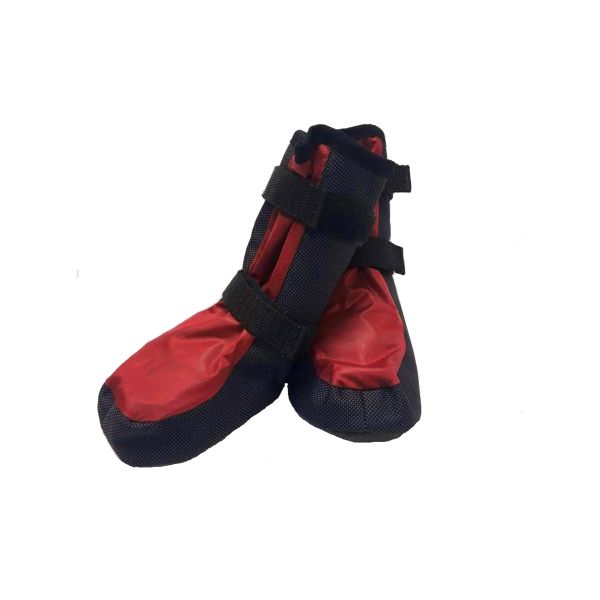 Изготовлены из прочного износостойкого синтетического материала Оксфорд 600 с водоотталкивающей пропиткой. Имеют подкладку из флиса. Подошва - ЭВА. Ботинок на лапе фиксируется с помощью двух липучек – которые позволяют надежно зафиксировать ботинок на лапе. Предназначены для ношения в холодную погоду и для защиты лап собаки от соли и реагентов.