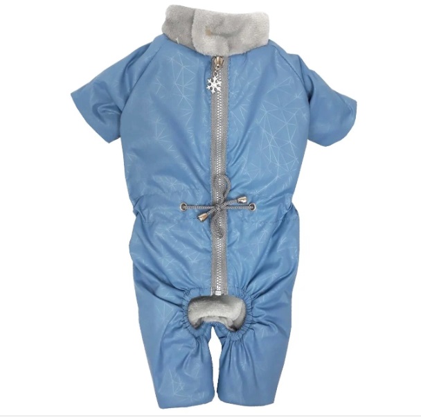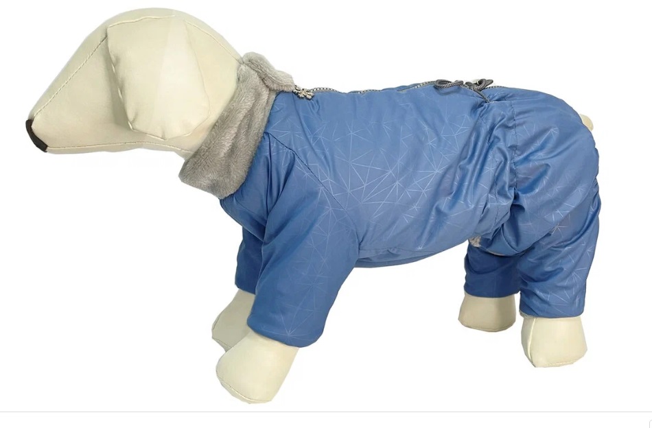 Воротник комбинезона оторочен меховой подкладкой и закрывает шею собаки от ветра и осадков.
