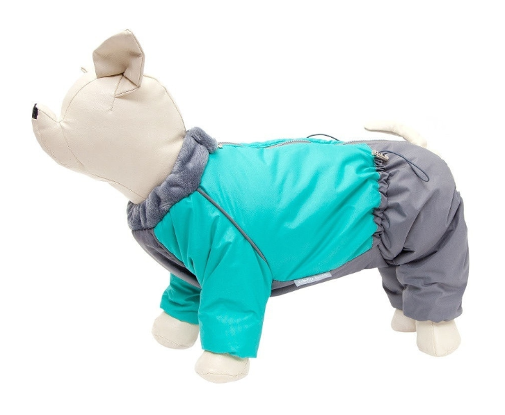 Комбинезон легко одевается и застёгивается на спине с помощью молнии. На воротнике имеется кнопка для фиксации. Ворот комбинезона отделан мехом . Для лучшей посадки объём комбинезона регулируется с помощью шнурка - утяжки под животом, резинками на лапах. Светоотражающий кант сделает заметным Вашего питомца в темное время суток.