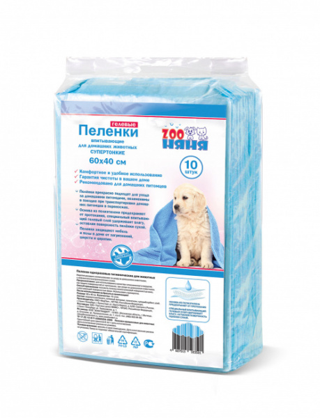 Гелевые пеленки ЗооНяня – это гигиенические пеленки для домашних животных. Супертонкие, так как не содержат целлюлозного наполнителя. Внутри – суперабсорбент, который превращает жидкость в гель и удерживает ее внутри. Верхний слой пеленки – мягкий нетканый материал, подойдет даже для самых чувствительных лап. Полиэтилен в основе предотвратит протекание. Гелевые пеленки ЗооНяня – это гарантия чистоты в вашем доме.