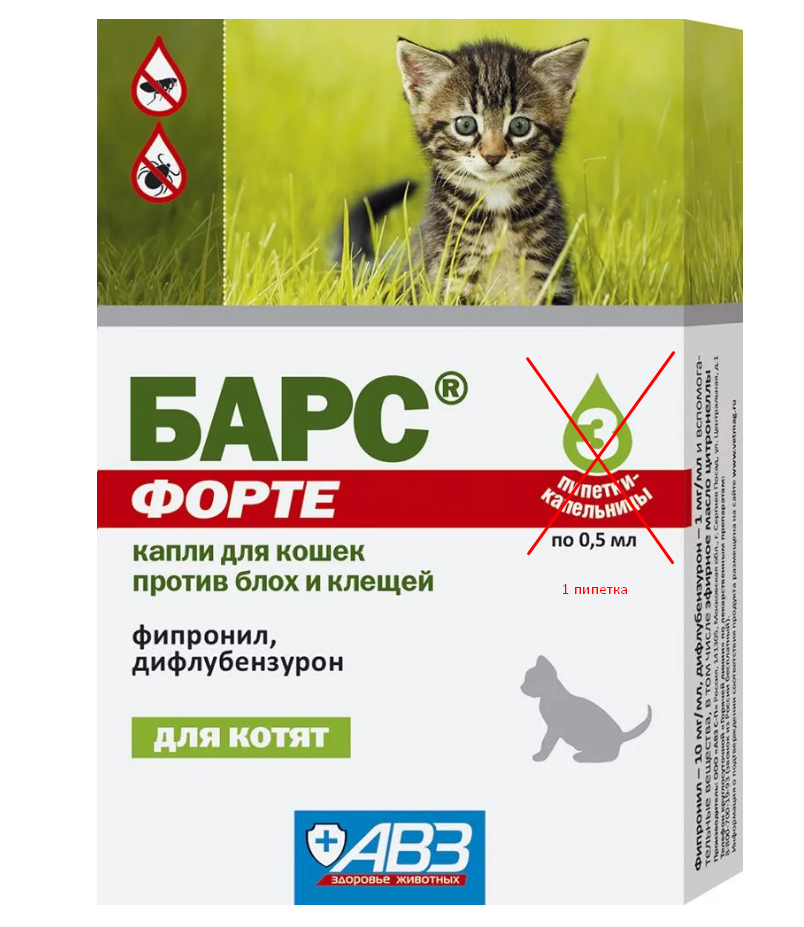 БАРС® форте капли для кошек против блох и клещей назначают котятам с 8-недельного возраста с лечебной и профилактической целью при энтомозах, вызванных вшами, блохами, власоедами, и нотоэдрозе (чесотка), поражают иксодовыми клещами, а также для предотвращения нападения эктопаразитов на животных.