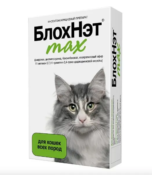 Инсекто-акарицидные капли БлохНэт оказывают губительное действие на личинок и половозрелых клещей семейства Ixodidae, клещей Sarcoptes canis, Otodectes cynotis и насекомых Linognathus setosus, Trichodectes canis, Ctenocephalides canis. Препарат обладает репеллентными свойствами в отношении кровососущих насекомых (гнуса) из семейства Culicidae. Высокая терапевтическая эффективность капель обусловлена наличием в их составе комплекса соединений, оказывающих инсекто-акарицидное действие, которое выражается в том, что фипронил блокирует ГАМК-зависимые рецепторы паразита и нарушает нервно-мышечную передачу, что приводит к параличу и гибели последнего, в свою очередь бензилбензоат кумулируется в теле паразита в токсических для него концентрациях, а диметилфталат, оставаясь на поверхности кожно-волосяного покрова обработанного животного, оказывает отпугивающее (репеллентное) действие. Капли БлохНэт по степени воздействия на организм теплокровных животных относятся к умеренно опасным веществам и в рекомендуемых дозах не оказывают местнораздражающего, резорбтивно-токсического и сенсибилизирующего действия.