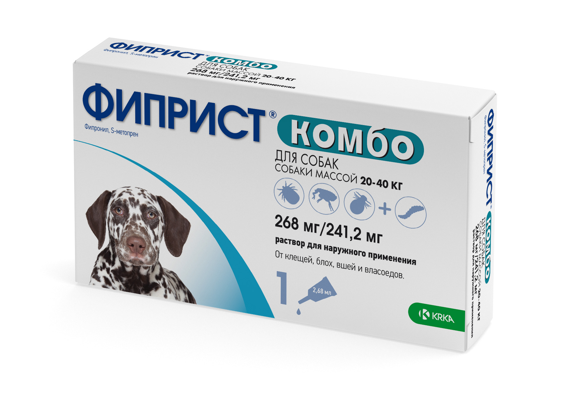Выпускают Фиприст Комбо для собак расфасованным пo 0,67 мл, 1,34 мл и по 2,68 мл в полиэтиленовые пипетки, помещенные поштучно в пакеты из алюминиевой фольги. Пакеты с пипетками упаковывают в картонные коробки. Каждую упаковку снабжают инструкцией по применению.