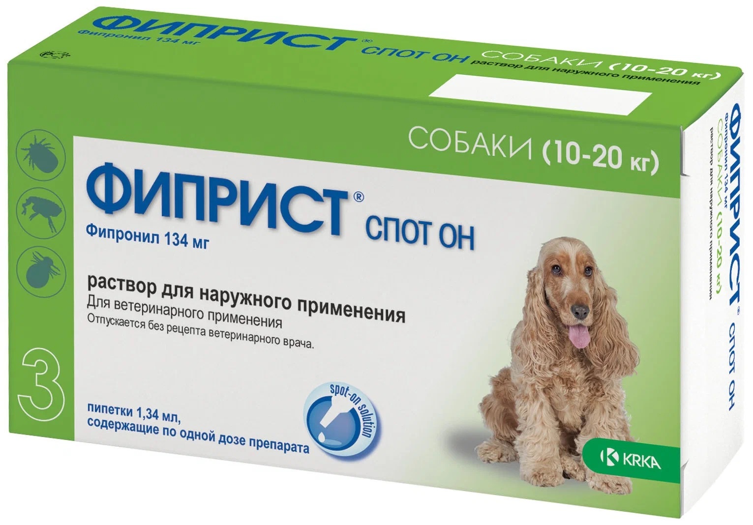 Фипронил — инсекто-акарицид широкого спектра действия из группы фенилпиразолов, плохо растворимый в воде. Он блокирует ГАМК-зависимые рецепторы паразита, нарушает процесс передачи нервных импульсов у членистоногих, но не оказывает такого влияния на ГАМК-рецепторы млекопитающих. При нанесении на кожу животного препарат практически не всасывается в системный кровоток и в течение суток равномерно распределяется по поверхности тела, накапливаясь в сальных железах кожи и защищая, таким образом, домашних животных от эктопаразитов. Фиприст Спот Он по степени воздействия на организм теплокровных животных относится к умеренно опасным веществам. При попадании в глаза вызывает слабое раздражение. Препарат токсичен для кроликов, рыб и других гидробионтов.