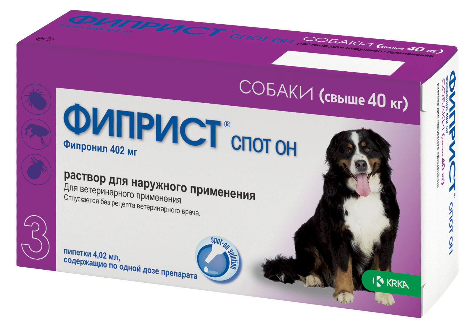 Если вес собаки более 60 кг, то для обработки следует использовать 2 пипетки, предназначенные для собак от 20 до 40 кг. Защитное действие препарата против клещей составляет 1 месяц (для кошек 15-21 день), против насекомых — 2-2,5 месяца (для кошек 1,5 месяца). Для лечения отодектоза (ушной чесотки) у животных слуховой проход очищают от корочек и струпьев сухим способом, без использования специальных гигиенических средств и лосьонов для ушей. Препарат закапывают в оба уха по 4-6 капель, даже в случае поражения только одного уха. Для равномерного распределения препарата ушную раковину складывают пополам и слегка массируют ее основание, а остаток лекарственного средства можно нанести на кожу между лопаток. Обработку проводят однократно. В запущенных случаях отодектоза, осложненных отитами, назначают антибактериальные и противовоспалительные средства. Препарат можно применять у беременных и кормящих самок. Мыть животных шампунем или купаться в природных водоемах разрешается не ранее 2 суток после обработки.