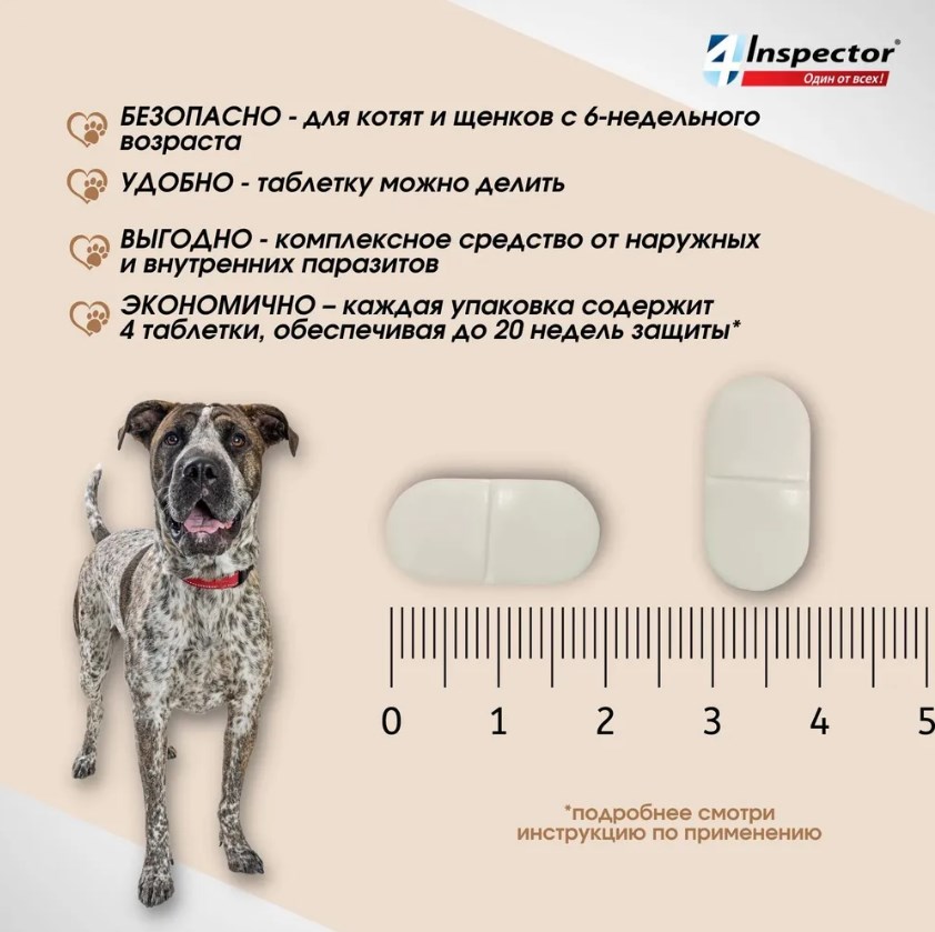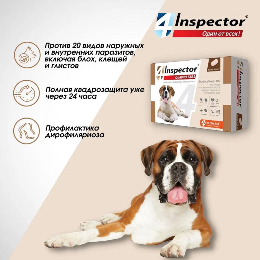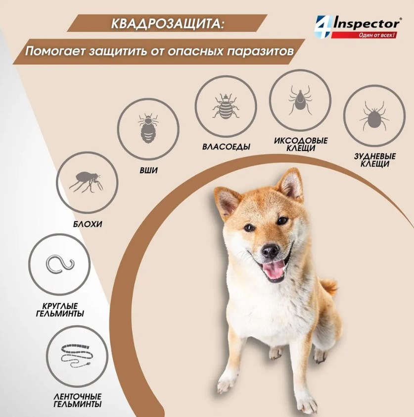 Inspector QUADRO защищает от 20 видов внешних и внутренних паразитов.
