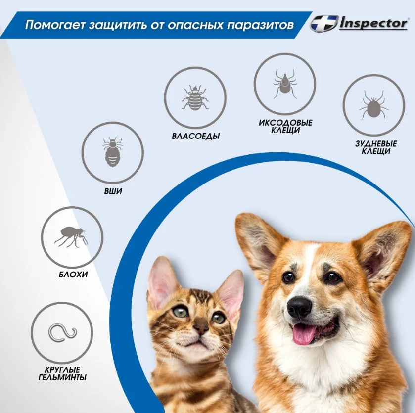 Inspector защищает от 14 видов внешних и внутренних паразитов.