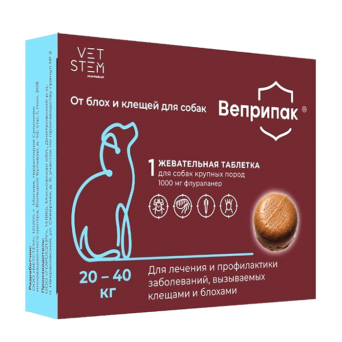 Веприпак — это жевательные таблетки от наружных паразитов для собак.
