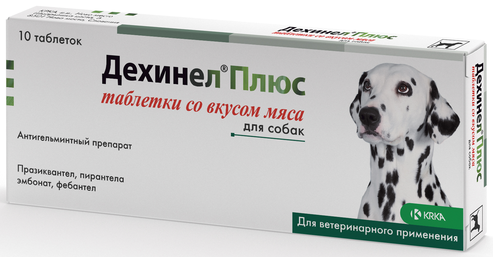 Дехинел Плюс, благодаря входящим в его состав действующим веществам, обладает антипаразитарной активностью в отношении цестод: Echinococcus granulosus, Echinococcus multilocularis, Mesocestoides lineatus, Diphyllobothrium latum, Dipylidium caninum, Multiceps multiceps, Taenia spp. и нематод: Toxocara canis, Toxascaris leonina, Uncinaria spp., Ancylostoma spp., Trichuris vulpis. Фебантел, умеренно всасываясь из желудочно-кишечного тракта, вызывает у нематод угнетение синтеза белка тубулина и процесса поступления глюкозы, одновременно ингибирует фумаратредуктазу — фермент, ответственный за энергетический обмен гельминтов. Пирантел эмбонат очень плохо всасывается при пероральном введении и поэтому, оказывает свое действие непосредственно на поверхности слизистой оболочки желудочно-кишечного тракта больной собаки. Он блокирует у нематод нервно-мышечную передачу импульса и вызывает паралич мускулатуры гельминта, поэтому паразиты легко выводятся из желудочно-кишечного тракта хозяина. Празиквантел хорошо всасывается в желудочно-кишечном тракте и оказывает губительное действие на цестод (ленточных червей) за счет повышения проницаемости клеточных мембран паразитов для ионов кальция и угнетения фумаратредуктазы, что вызывает спастическое сокращение мускулатуры паразита, переходящее в паралич. Празиквантел выделяется с желчью в неизменном виде. Дехинел Плюс по степени воздействия на организм теплокровных животных относится к малоопасным веществам и в рекомендуемых дозах не оказывает сенсибилизирующего и гепатотоксического действия.