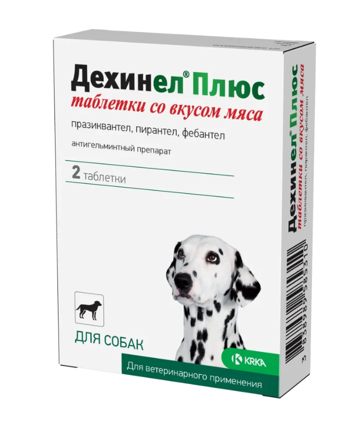 Дехинел Плюс, благодаря входящим в его состав действующим веществам, обладает антипаразитарной активностью в отношении цестод: Echinococcus granulosus, Echinococcus multilocularis, Mesocestoides lineatus, Diphyllobothrium latum, Dipylidium caninum, Multiceps multiceps, Taenia spp. и нематод: Toxocara canis, Toxascaris leonina, Uncinaria spp., Ancylostoma spp., Trichuris vulpis. Фебантел, умеренно всасываясь из желудочно-кишечного тракта, вызывает у нематод угнетение синтеза белка тубулина и процесса поступления глюкозы, одновременно ингибирует фумаратредуктазу — фермент, ответственный за энергетический обмен гельминтов. Пирантел эмбонат очень плохо всасывается при пероральном введении и поэтому, оказывает свое действие непосредственно на поверхности слизистой оболочки желудочно-кишечного тракта больной собаки. Он блокирует у нематод нервно-мышечную передачу импульса и вызывает паралич мускулатуры гельминта, поэтому паразиты легко выводятся из желудочно-кишечного тракта хозяина. Празиквантел хорошо всасывается в желудочно-кишечном тракте и оказывает губительное действие на цестод (ленточных червей) за счет повышения проницаемости клеточных мембран паразитов для ионов кальция и угнетения фумаратредуктазы, что вызывает спастическое сокращение мускулатуры паразита, переходящее в паралич. Празиквантел выделяется с желчью в неизменном виде. Дехинел Плюс по степени воздействия на организм теплокровных животных относится к малоопасным веществам и в рекомендуемых дозах не оказывает сенсибилизирующего и гепатотоксического действия.