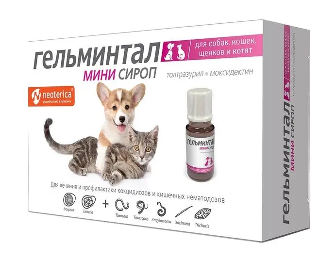 Обработка от паразитов может быть простой и удобной. Если ваш питомец агрессивный, упрямый, пугливый или нервный - используйте сладкий сироп Гельминтал Мини.