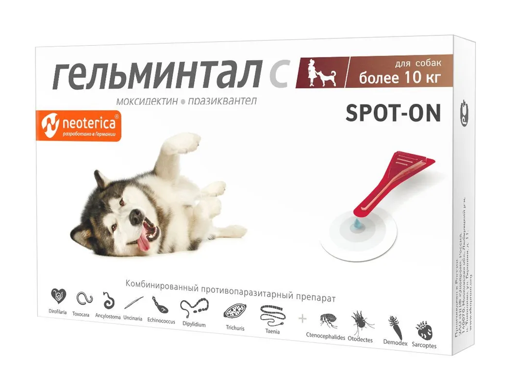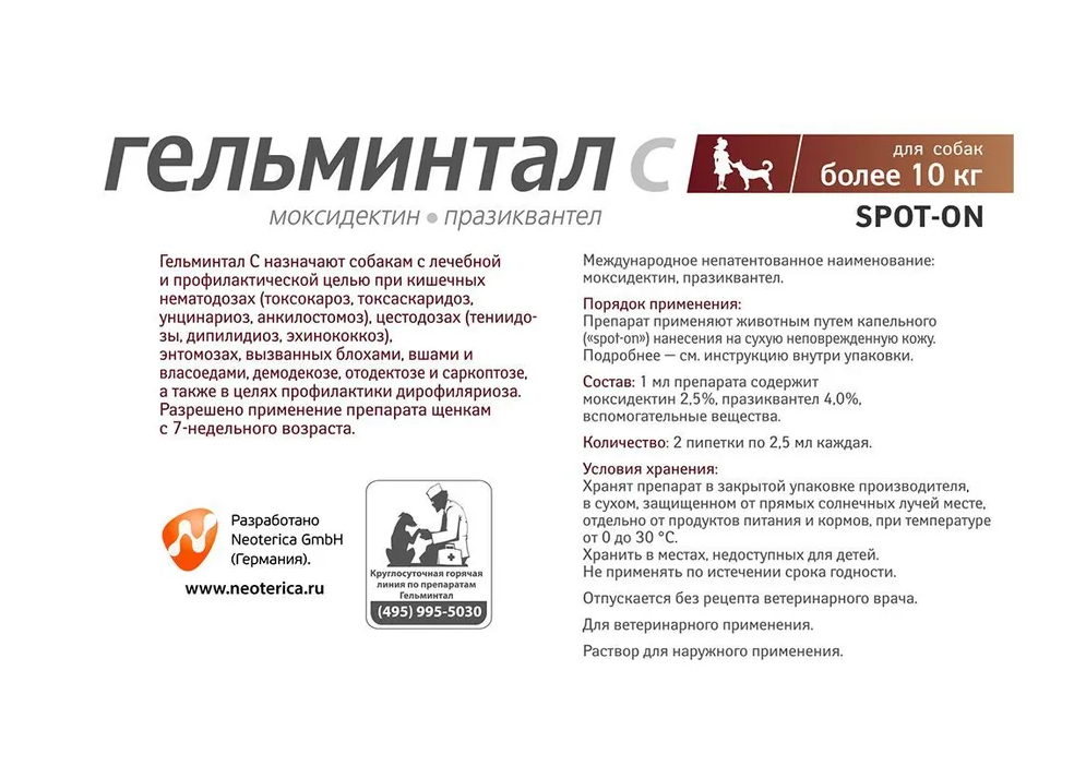 Обработка от гельминтов может быть простой и удобной. Если ваша собака агрессивная или упрямая, пугливая или нервная - используйте для питомца капли на холку Гельминтал.