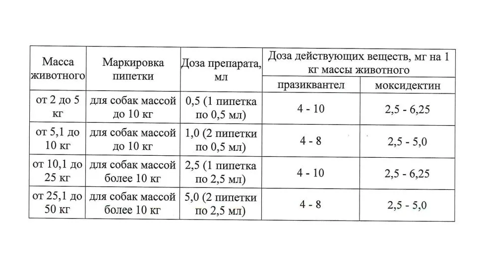 Дозировка 1 пипетка рассчитана на 5 кг веса.