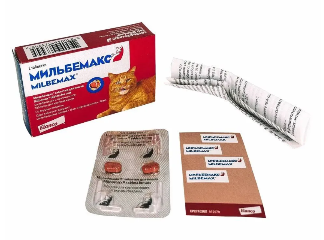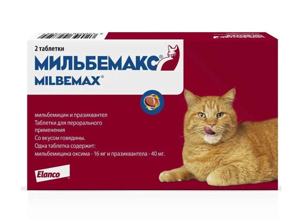 Мильбемакс - назначают с профилактической и лечебной целью для дегельминтизации кошек при нематодозах (токсокароз, анкилостомоз) и цестодозах (эхинококкоз, дипилидиоз, тениозы).