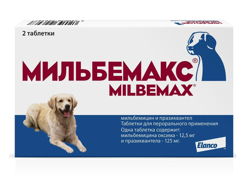 Мильбемакс таблетки для собак в качестве действующих веществ содержат мильбемицина оксим и празиквантел. Выпускают препарат в двух модификациях: «Мильбемакс таблетки для щенков и маленьких собак» с содержанием в одной таблетке мильбемицина оксима – 2,5 мг, празиквантела – 25 мг и «Мильбемакс таблетки для крупных собак» с содержанием мильбемицина оксима – 12,5 мг и празиквантела – 125 мг/табл.
