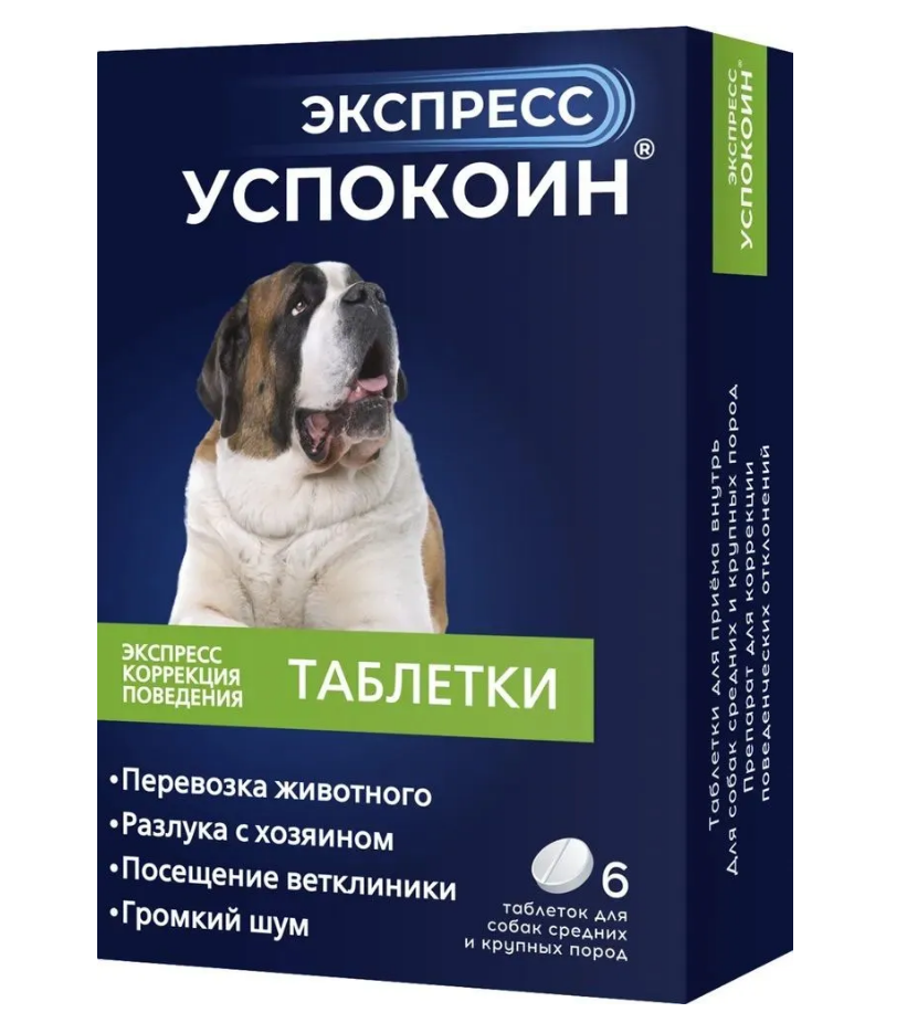Экспресс Успокоин таблетки для собак средних и крупных пород (масса таблетки 515 мг) - 120 мг/табл.