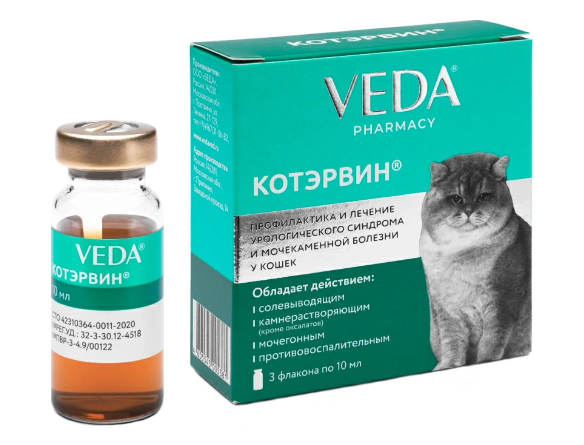 Котэрвин— лекарственный препарат растительного происхождения для профилактики и лечения урологического синдрома и мочекаменной болезни кошек и собак.