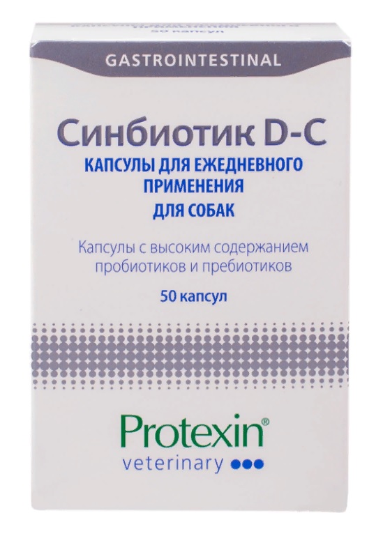 Protexin Синбиотик DC 50 капсул - пробиотическая кормовая добавка для нормализации микрофлоры желудочно-кишечного тракта у собак.
