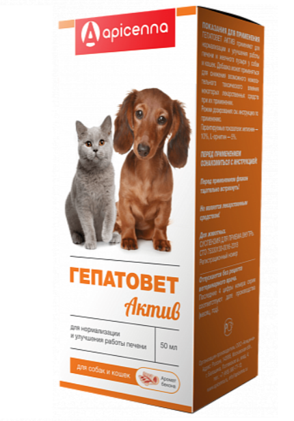 "ГЕПАТОВЕТ АКТИВ® ДЛЯ КОШЕК И СОБАК" Гепатовет Актив применяют для нормализации и улучшения работы печени и желчного пузыря у собак и кошек. Может применяться для снижения возможного нежелательного токсического влияния некоторых лекарственных средств при их применении.