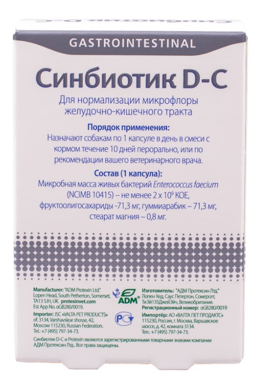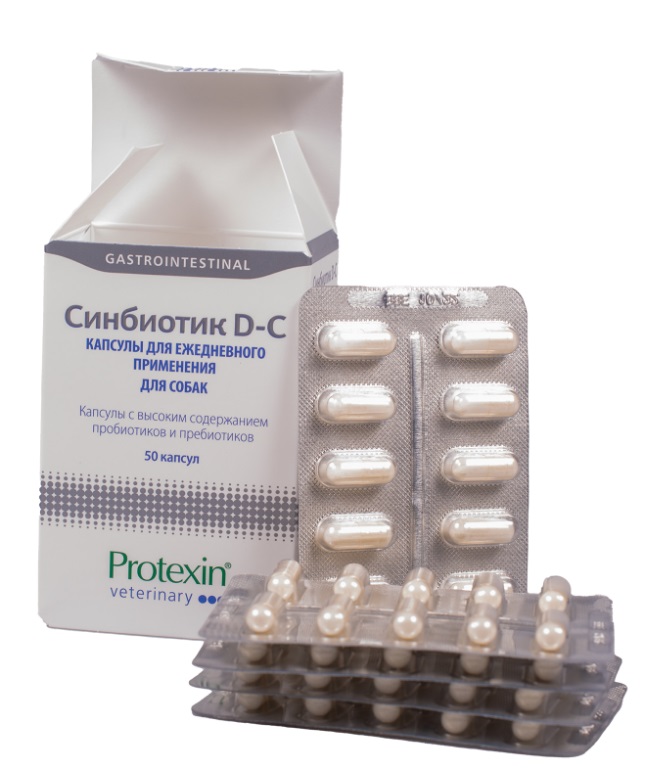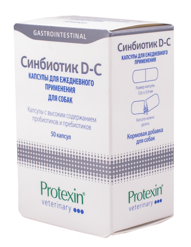 Protexin Синбиотик DC 50 капсул - пробиотическая кормовая добавка для нормализации микрофлоры желудочно-кишечного тракта у собак.