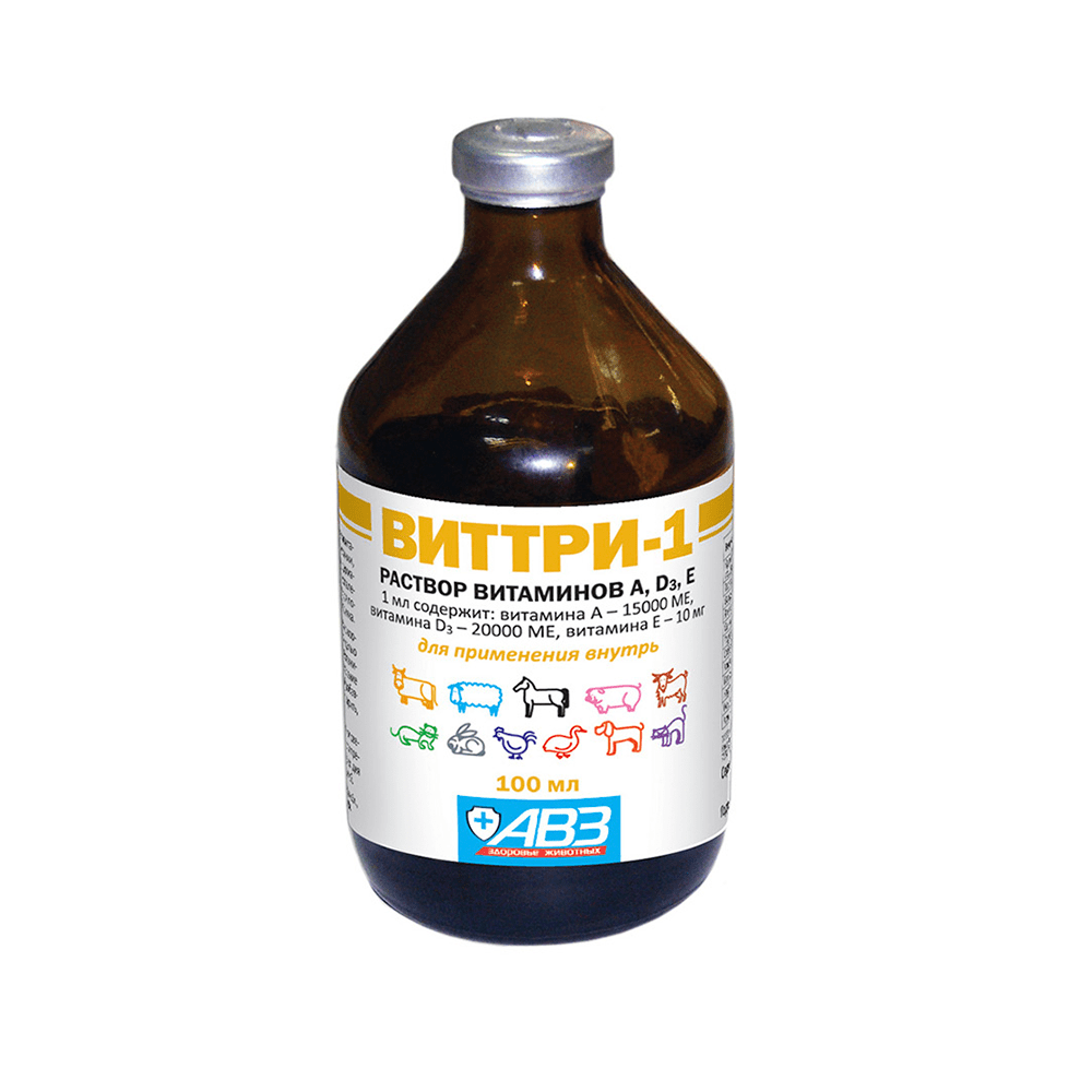 Виттри-1 раствор витаминов АД3Е является комбинированным витаминным препаратом, в котором витамины А, Д, Е приведены в физиологически обоснованных соотношениях. Препарат проявляет синергизм действия на организм животных, выражающийся в нормализации обмена веществ, профилактике гиповитаминозов и заболеваний, развивающихся на их фоне.